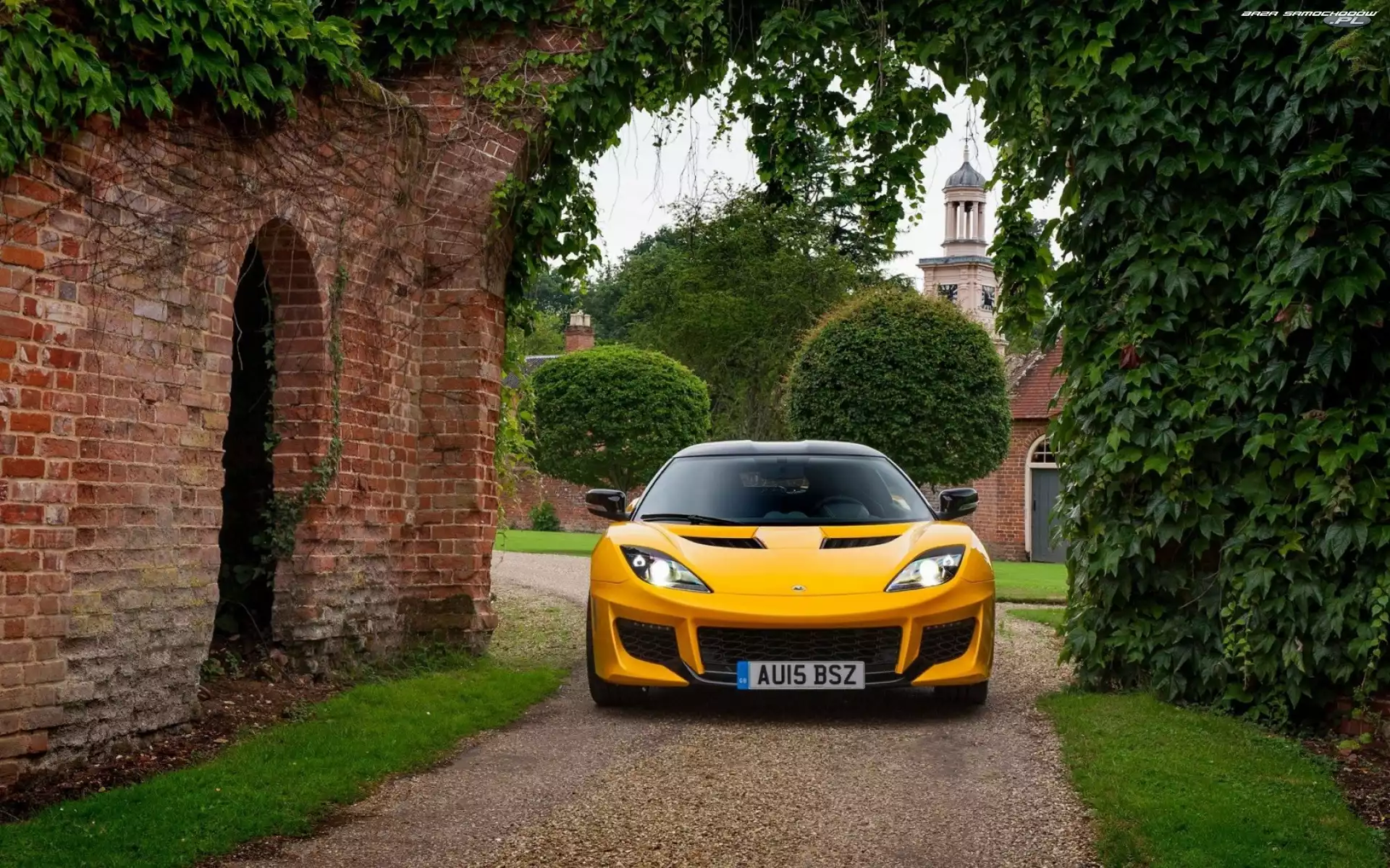 Lotus Evora, Tył Lotus Evora 400 Lotus Evora GT, Tył Lotus Evora Evora Sport 410, Samochód, Lotus Tył, Lotus Evora GTE, Lotus, Evora Lotus Evora Sport 410 GTE, Lotus, Evora Dom, Lotus Evora Lotus Evora GT430, Bok Lotus Evora GT410, Przód Mur, Winorośl, Droga, Dzika, Żółty, Samochód, Drzewa, Evora, Lotus, Brama Lotus Evora, Dach