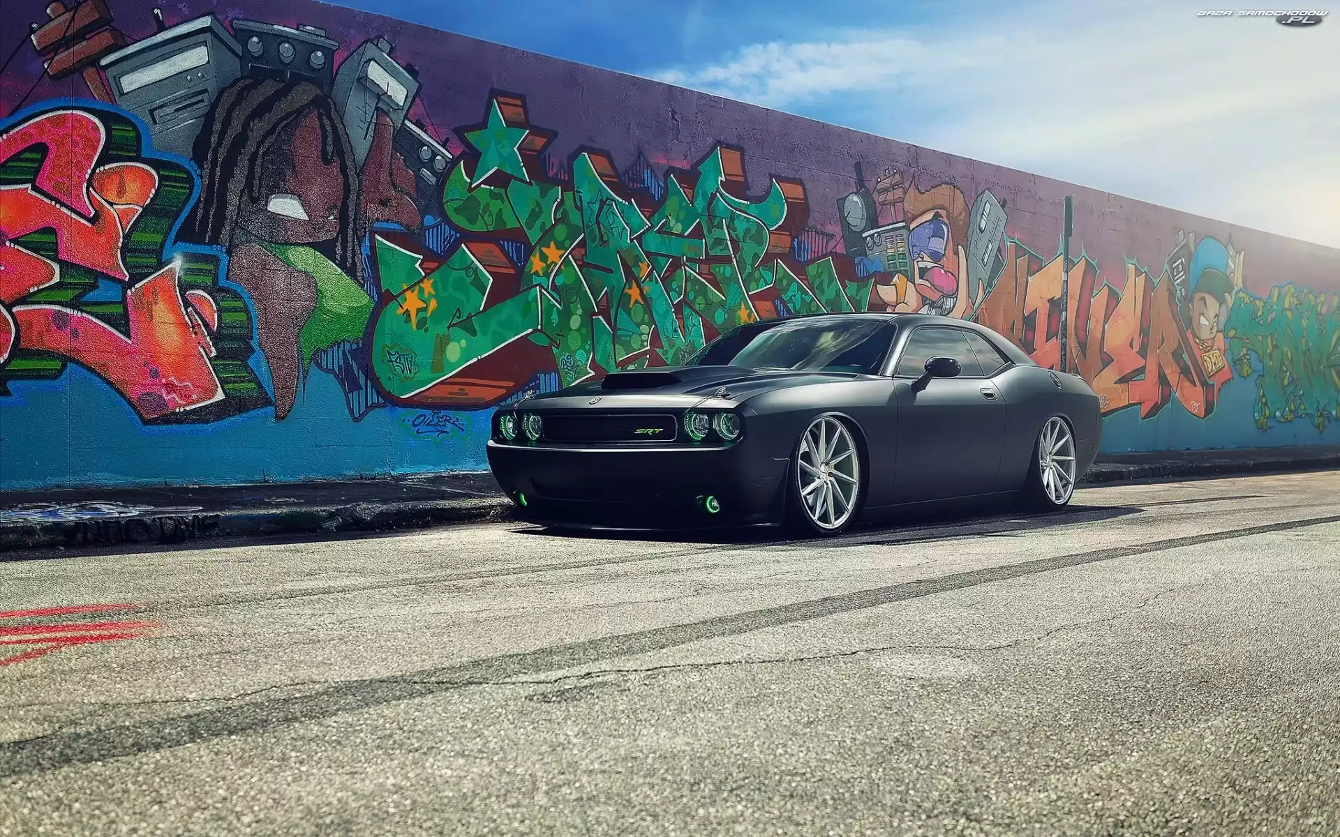 Challenger, Graffiti, Dodge, Mur- Zdjęcia samochodów
